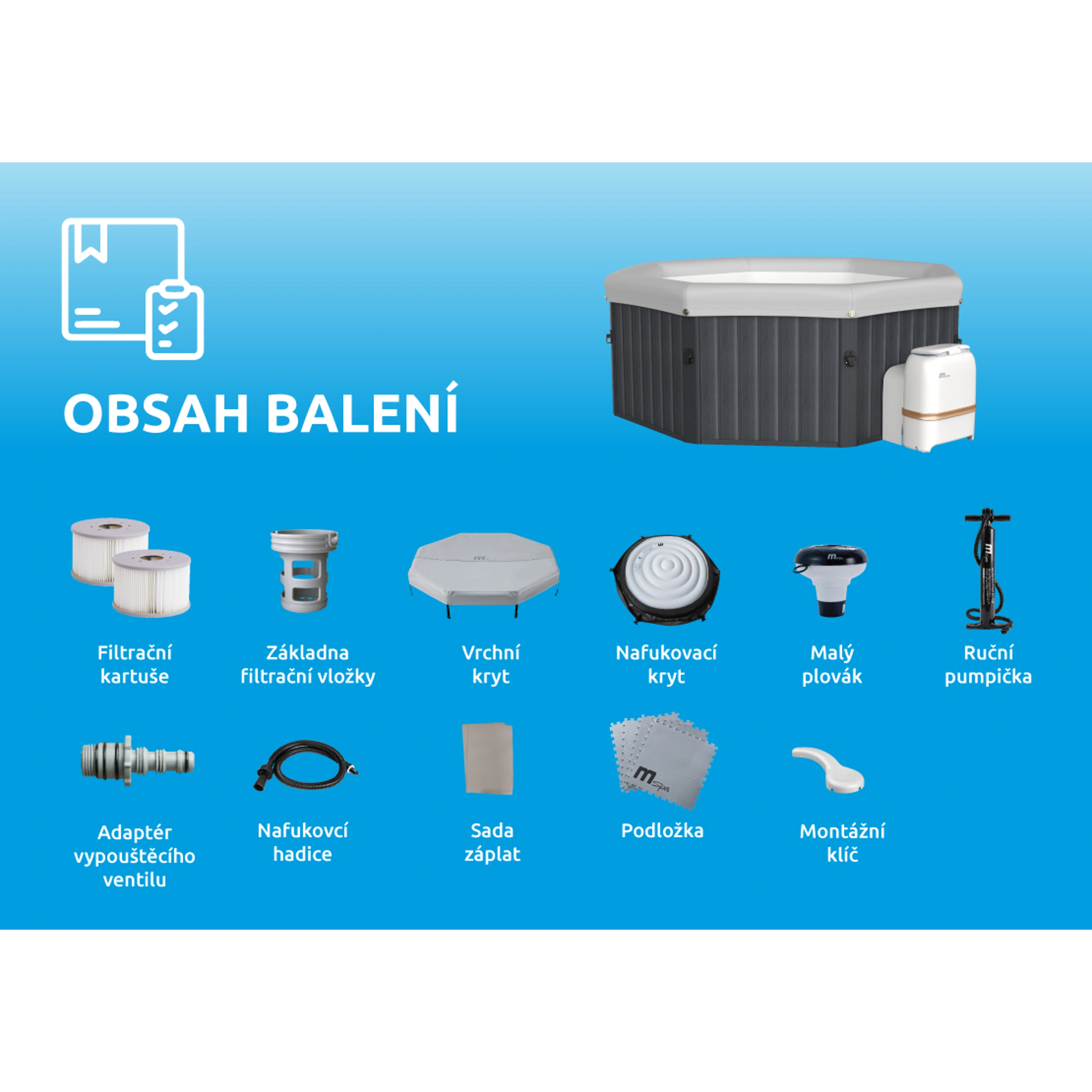 Stačí najít rovné podloží, sestavit vířivku a napustit vodu. Montáž vířivky zvládnou dva lidé do 60 minut.