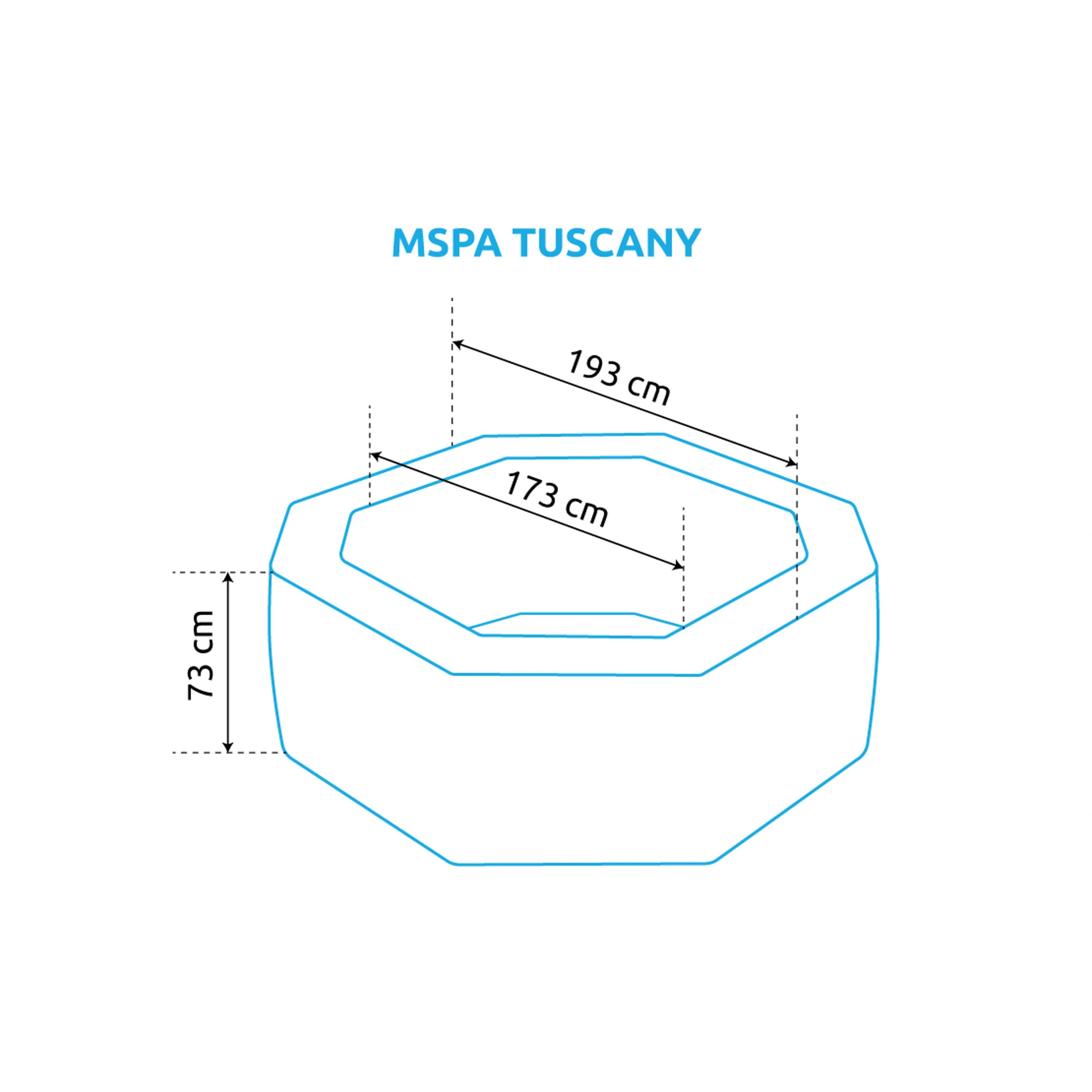 Vířivka Mspa Tuscany poskytuje dokonalou relaxaci ihned po stisknutí jediného tlačítka. Prostorově je řešená až pro šest osob. Intuitivní ovládací panel aktivuje 138 vysoce výkonných bublinkových trysek, které masáží povzbudí každý sval. Integrovaný topný systém umožňuje upravit teplotu vody dle momentální nálady. Vířivka Mspa vyžaduje jednoduchou a rychlou údržbu. Vana je vyrobená z kvalitního dřevoplastu + vnitřní část je z RhinoTech prémiové PVC folie s antibakteriální úpravou v metalické stříbrné barvě.
