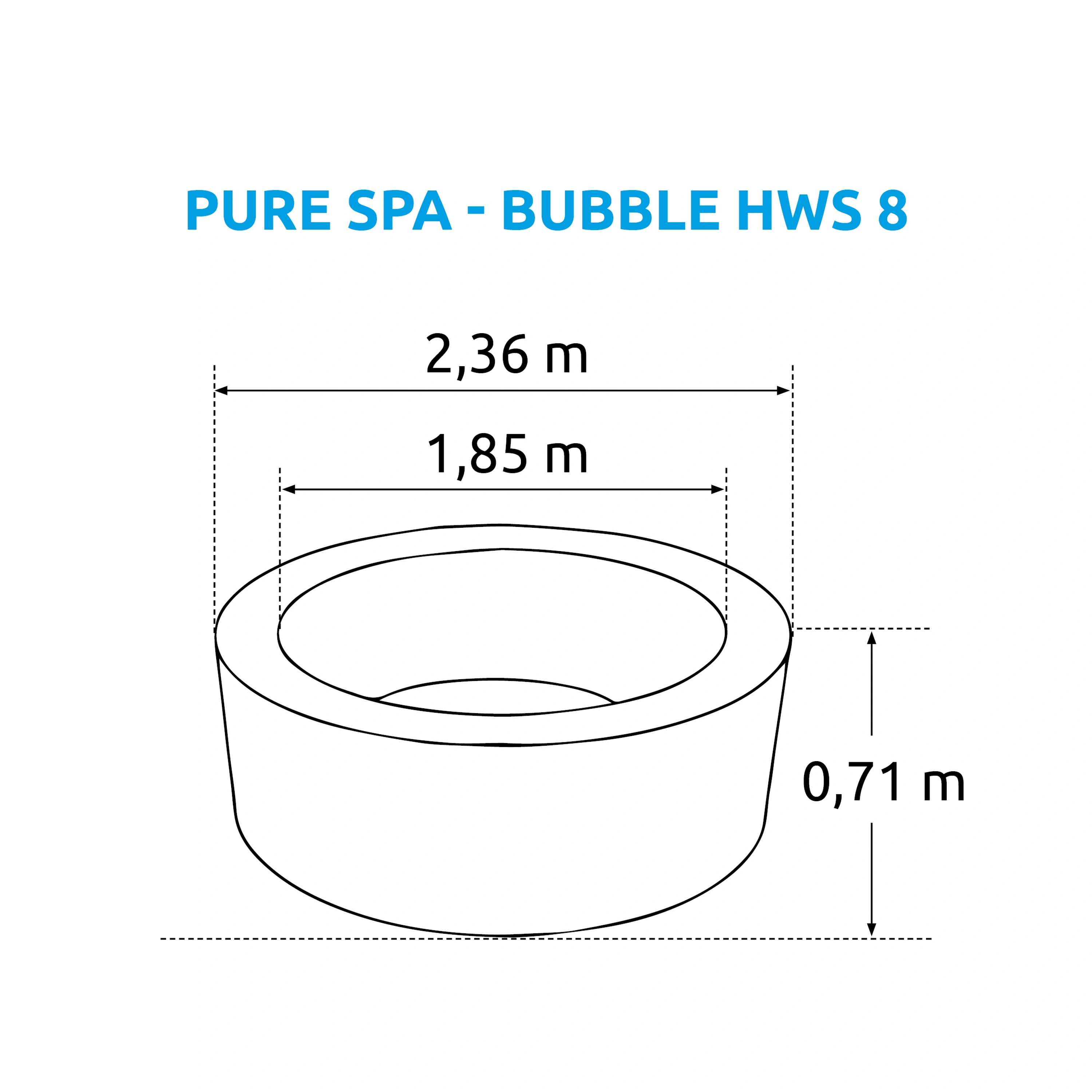 - Vnější průměr: 236 cm (po naplnění vodou, tolerance ± 5%)