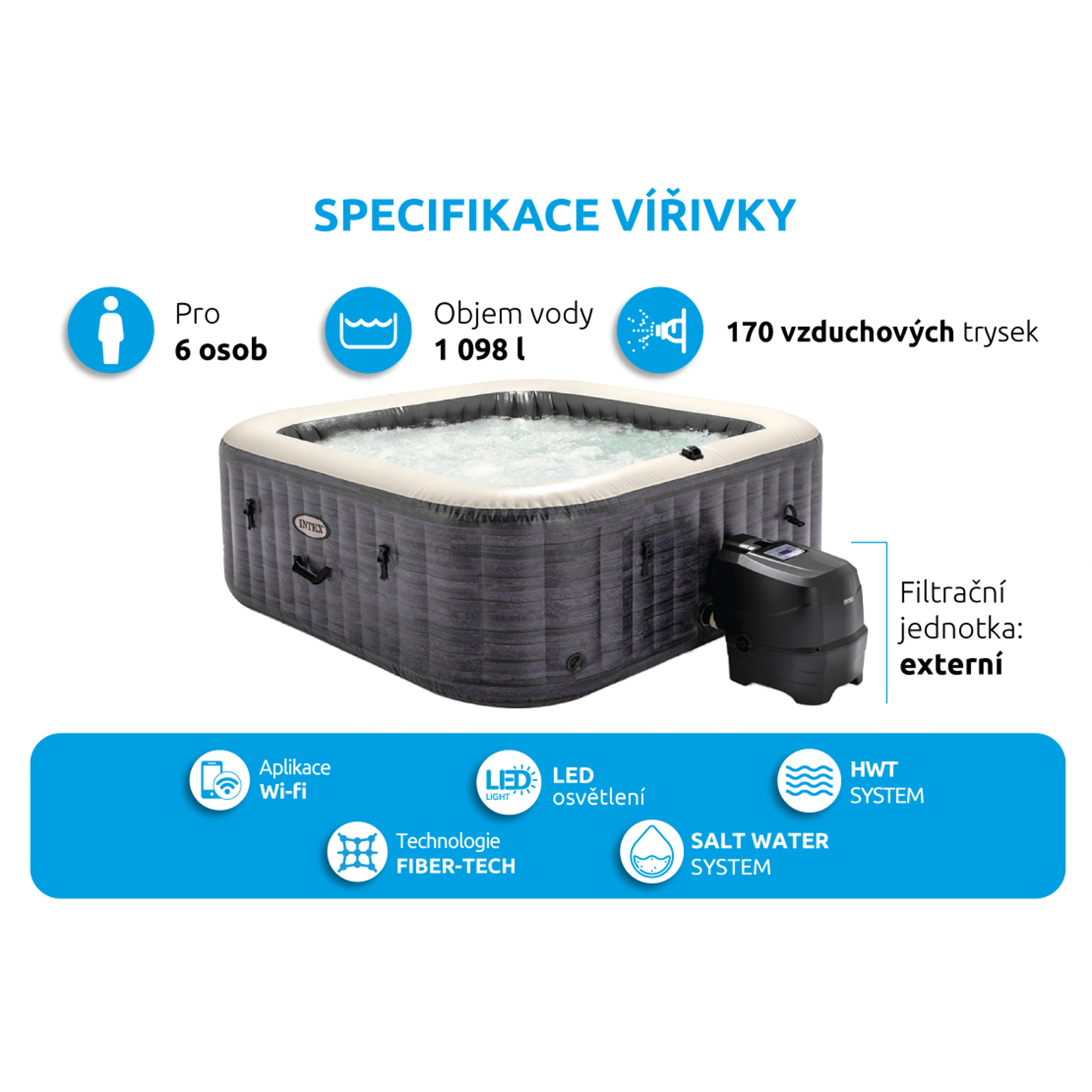 Vířivka je vybavena vestavěným solinátorem, který nahrazuje chlor jednoduchou nejodizovanou solí, která je šetrnější k lidské pokožce.