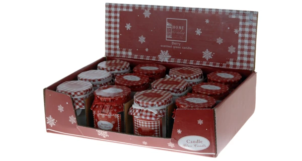 Vonná svíčka ve skleněném obalu a opatřená víčkem.