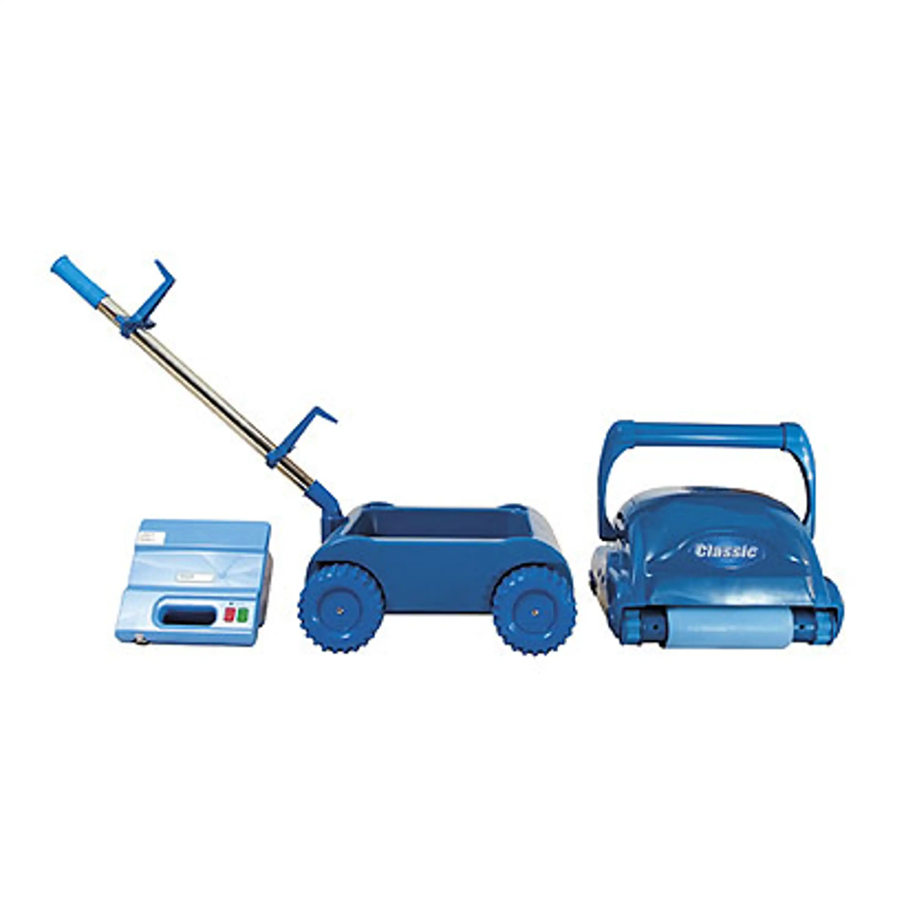 Samozřejmostí je velmi jednoduché ovládání - po vložení do bazénu a následném zapnutí se o robota nemusíte starat, neboť se po ukončení čistícího cyklu sám vypne. Součástí dodávky je i vozík pro snadnou manipulaci a uložení kabelu.