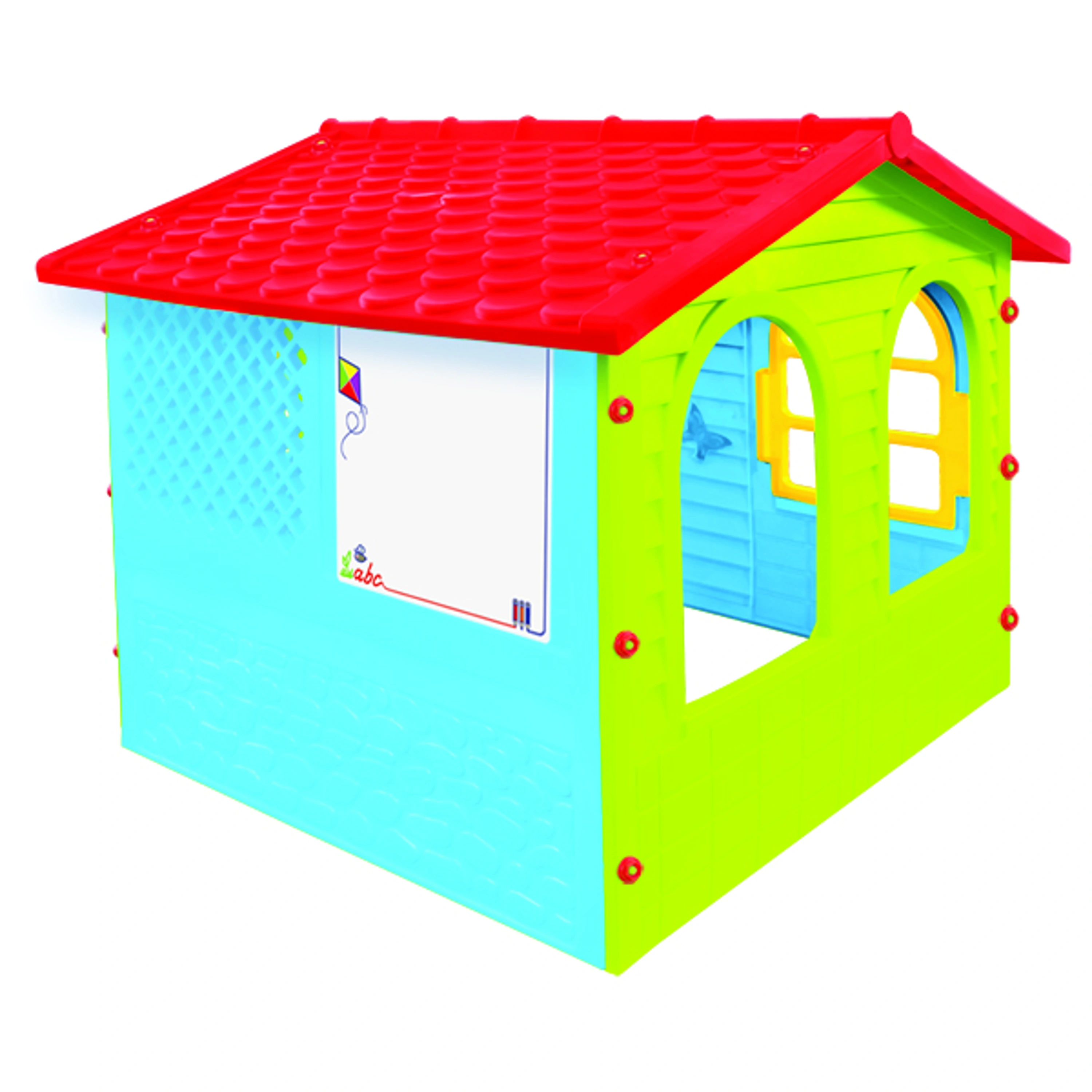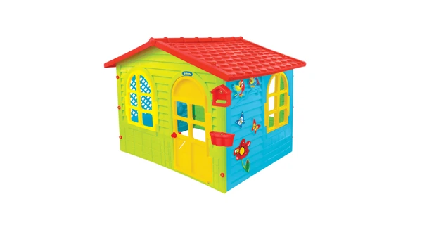 Krásný plastový domek na zahradu, který vypadá jako opravdový. Domek má otevírací okna a dveře. Součástí jsou i makety - krmítko pro ptáčky, květináč a z boku tabule, na kterou se dá psát a malovat (fixi nejsou součástí dodávky). Makety lze přichytit na bok domku jako dekoraci. Domeček je stabilní, což umožňuje dítěti domkem prolézat a bezpečně si hrát. Barvy jsou odolné UV záření.