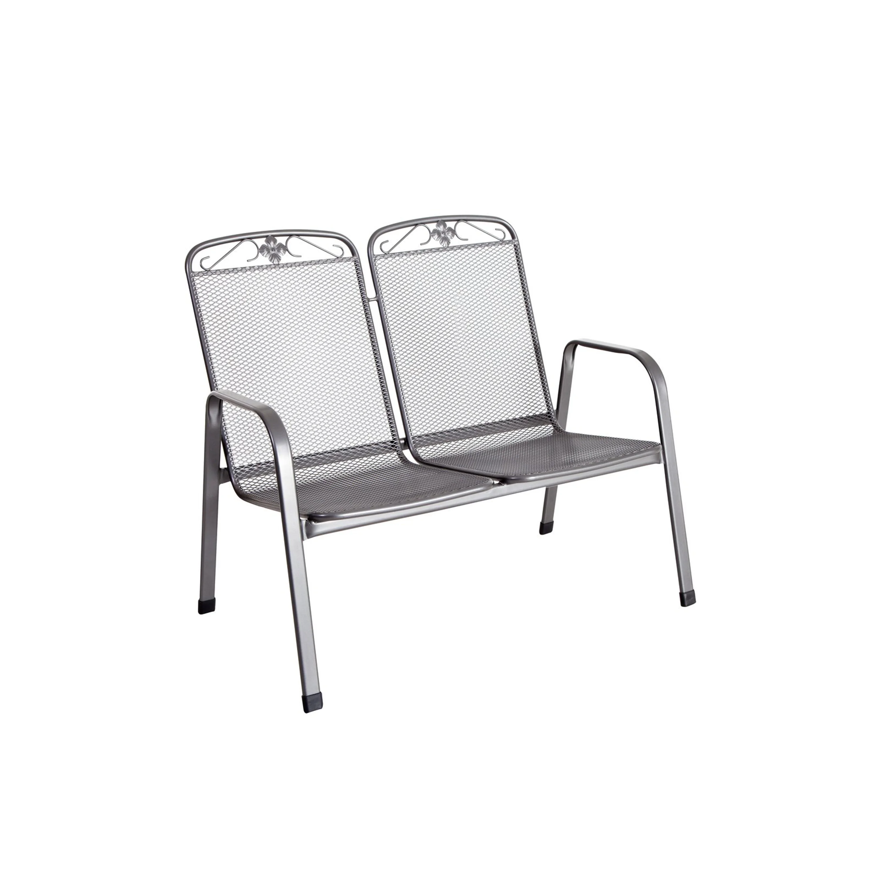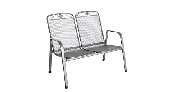 Kovová drátěná zahradní lavice - praktická, stabilní, stohovatelná. Lavice je stavěná pro dvě osoby (dvoumístná), maximální nosnost lavice je 110kg. Je zhotovena z kvalitního kovu, opěradla a sedáky jsou z drátěné výplně. Horní část opěradla zdobí jemná dekorace. Originální kus nábytku na Vaši zahradu, či terasu. Extra pevný a odolný spojovací materiál pro ještě delší životnost.