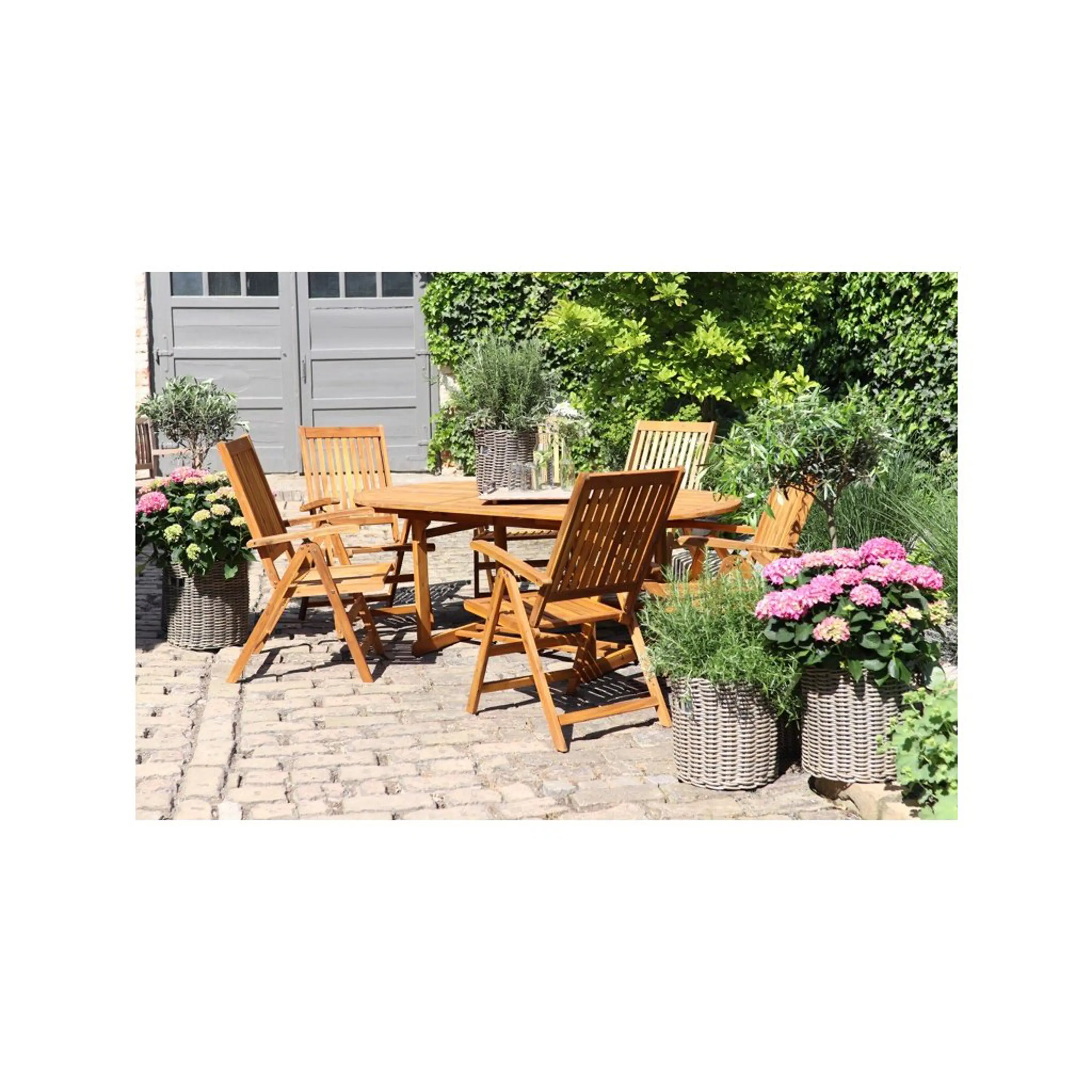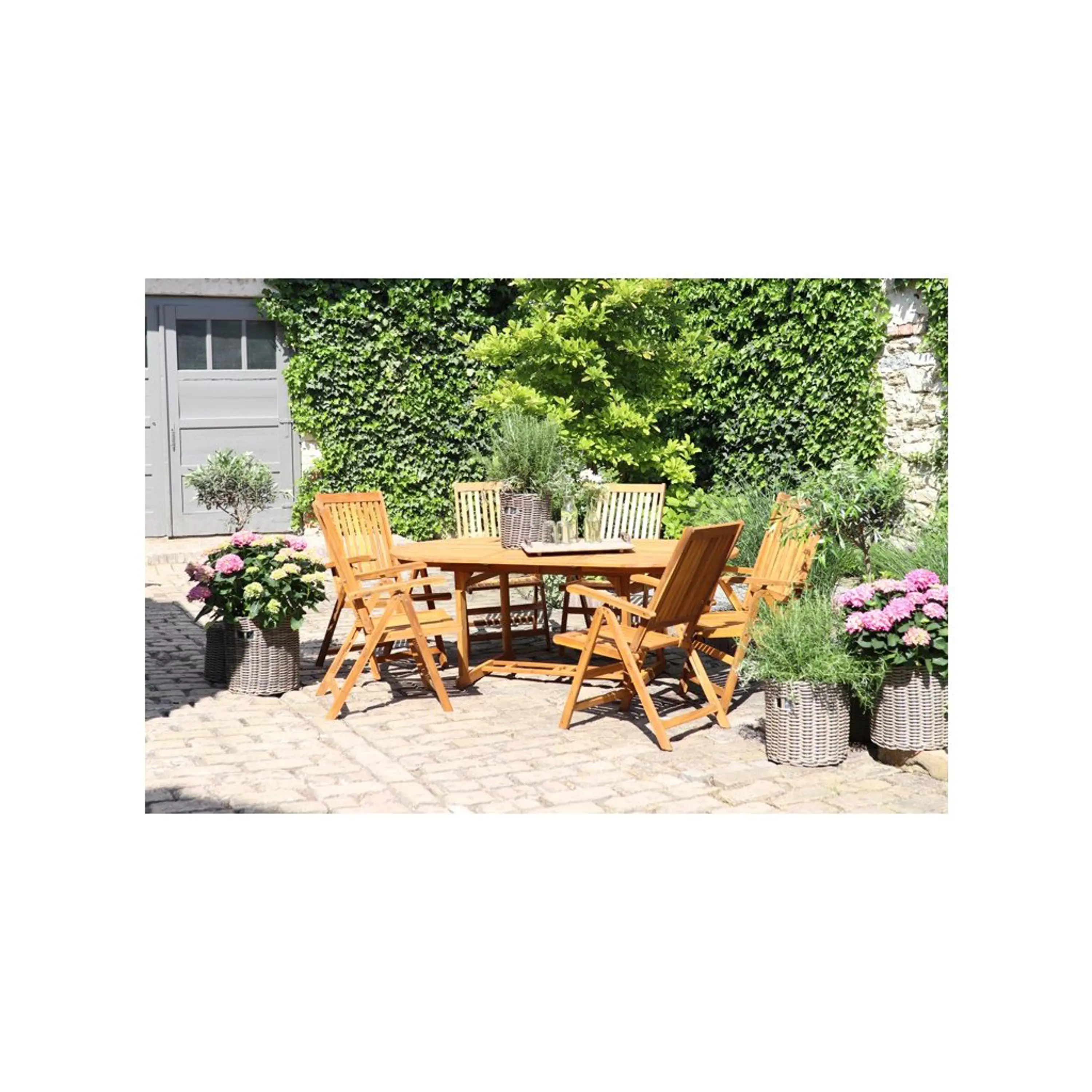 Zahradní stůl Viet doplňuje 6 polohovacích židlí Viet vyrobených rovněž z akácie. Všechny zahradní židle Viet jsou skládací. Při uskladnění po sezóně ve složeném stavu nezaberou mnoho místa.