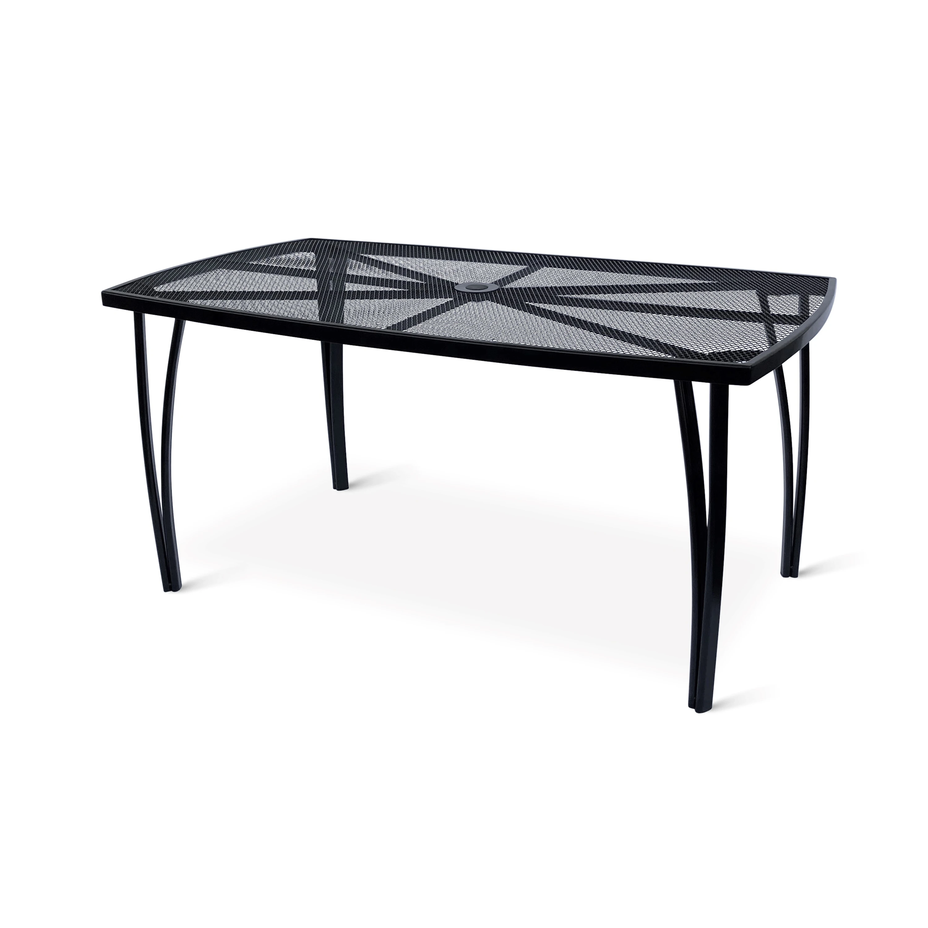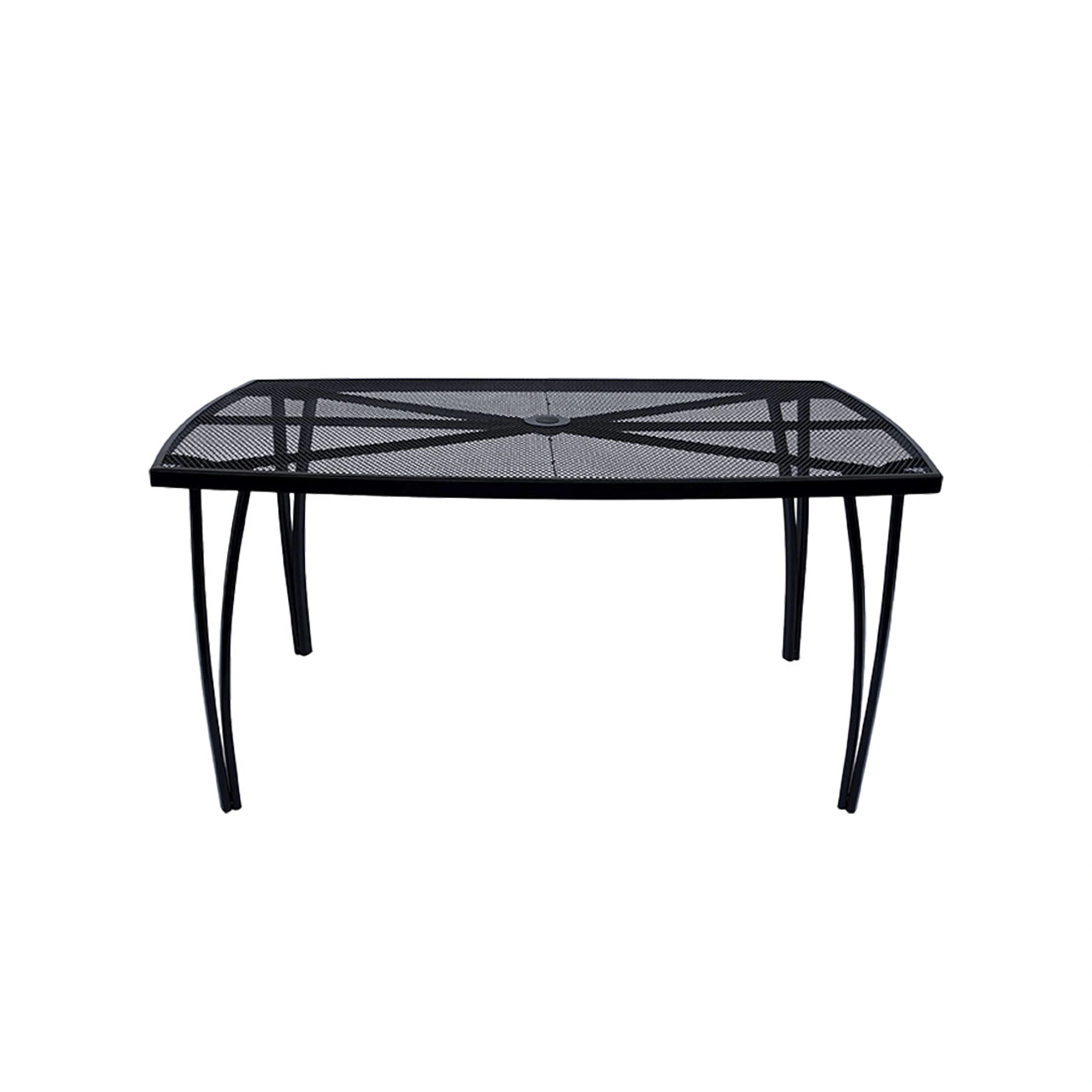 Obdélníkový stůl Lana steel z kovu disponuje deskou s drátěným výpletem s otvorem pro slunečník uprostřed. Díky tomu je celá konstrukce lehká a stůl tak snadno přenesete. Kovová konstrukce byla pro delší životnost ošetřena proti rzi práškovým lakem. Snadná údržba stolu, vyroben z omyvatelných materiálů. Odolává povětrnostním vlivům.