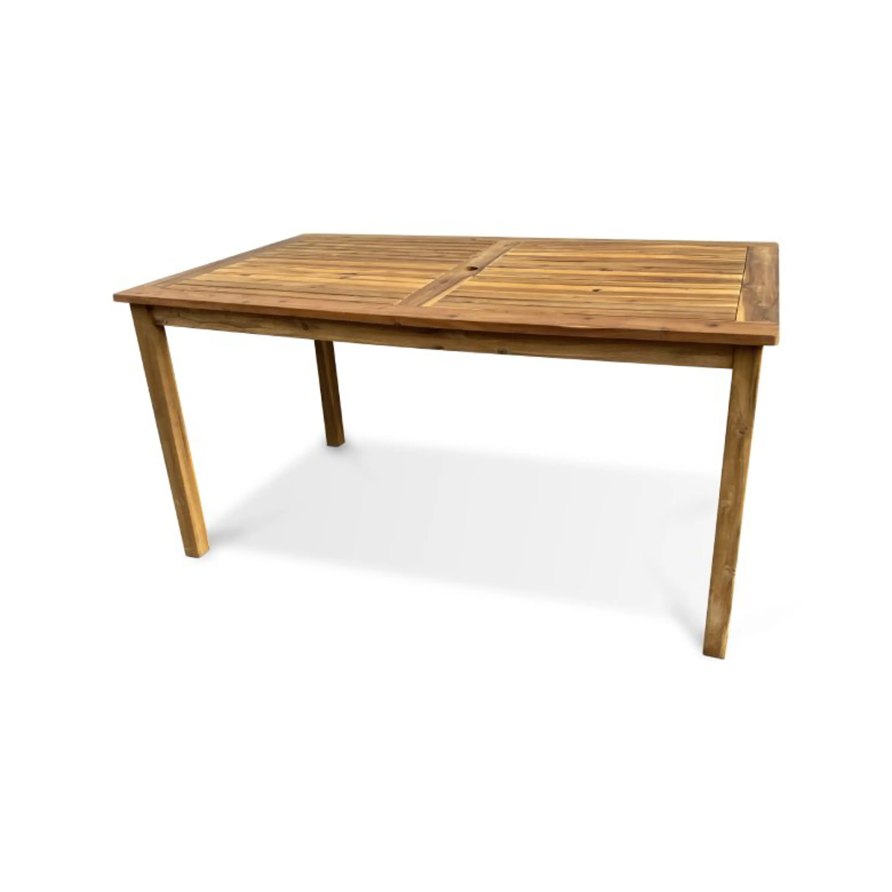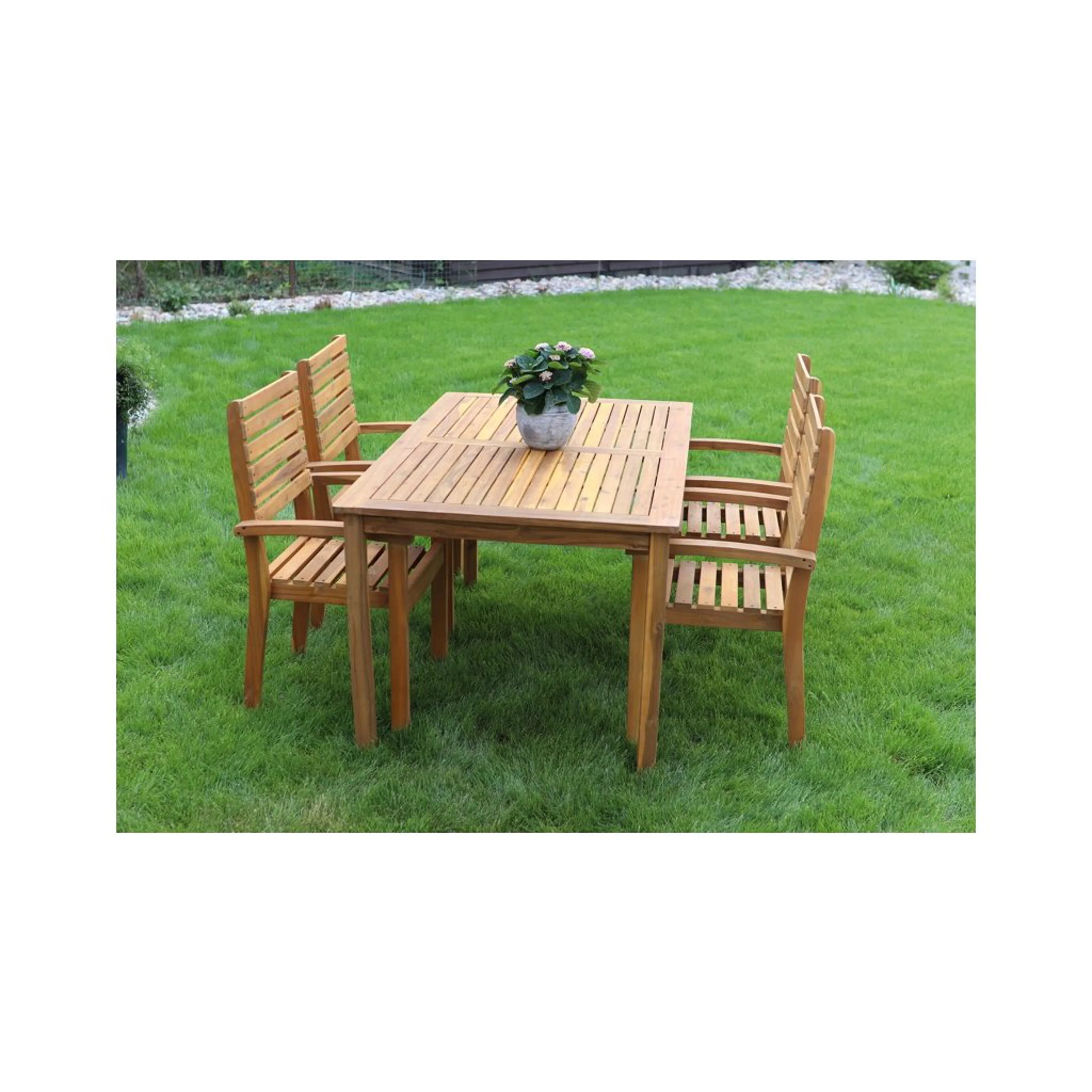 Luc hranatý akáciový stůl z vysoce kvalitního akáciového dřeva hnědé barvy. Akácie dobře odolává povětrnostním vlivům a vyznačuje se dlouhou životností. Uprostřed stolu praktický otvor pro slunečník. Vhodný do interiéru i exteriéru. Nenáročná údržba. Doporučujeme pravidelně natírat ochranným olejem na tropické dřeviny.