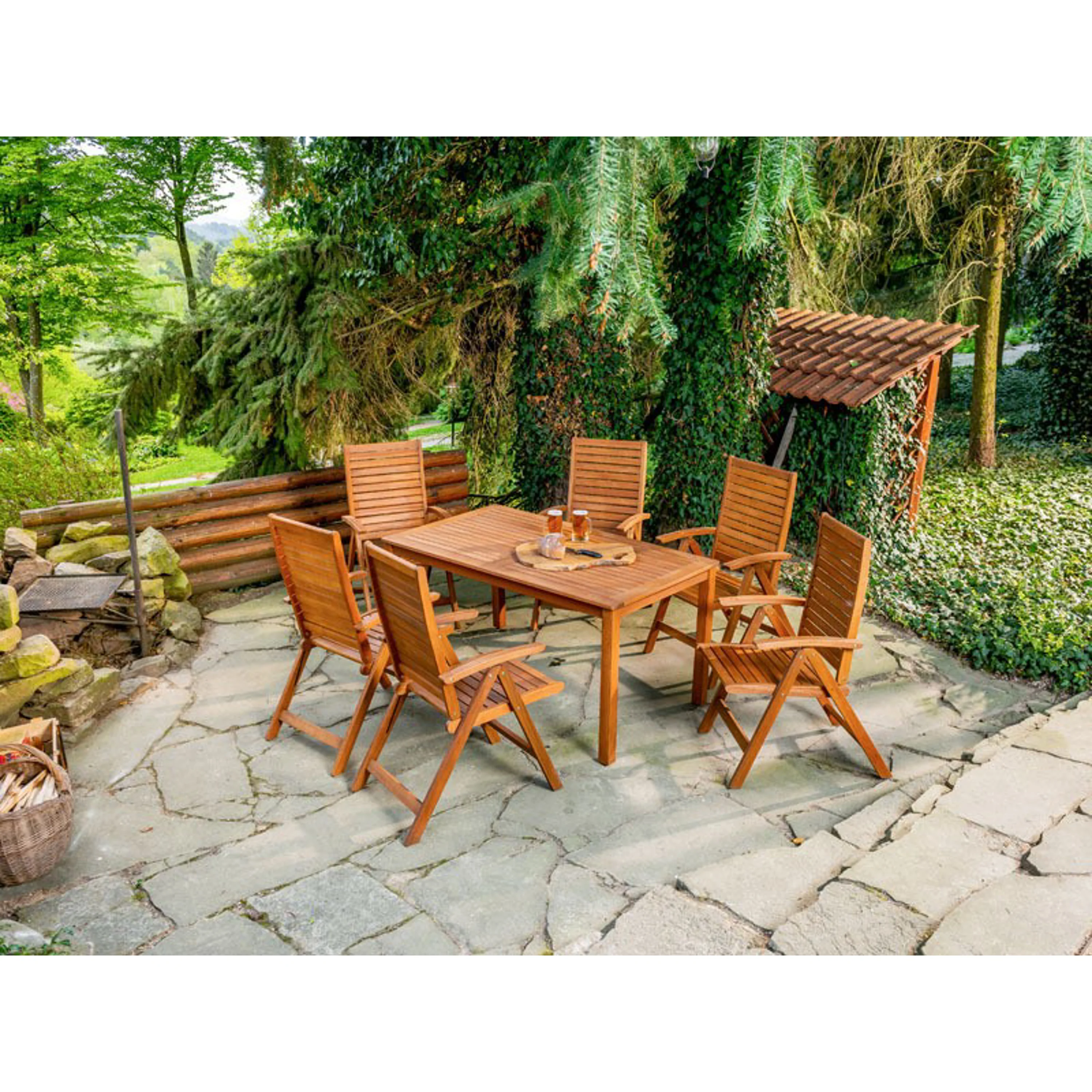 Masivní, kvalitně zpracované odolné eukalyptové dřevo je ošetřeno olejovou lazurou. Nábytek je tak dlouhověký a odolný vůči vodě, slunečnímu záření, kyselým dešťům i plísním a houbám. Dřevo s certifikátem FSC pochází z oblastí s vyváženým lesním hospodářstvím bez dopadu na ekologii a život místních obyvatel. Pro pravidelné ošetření a čištění doporučujeme použít čistič a olej na dřevěný nábytek.