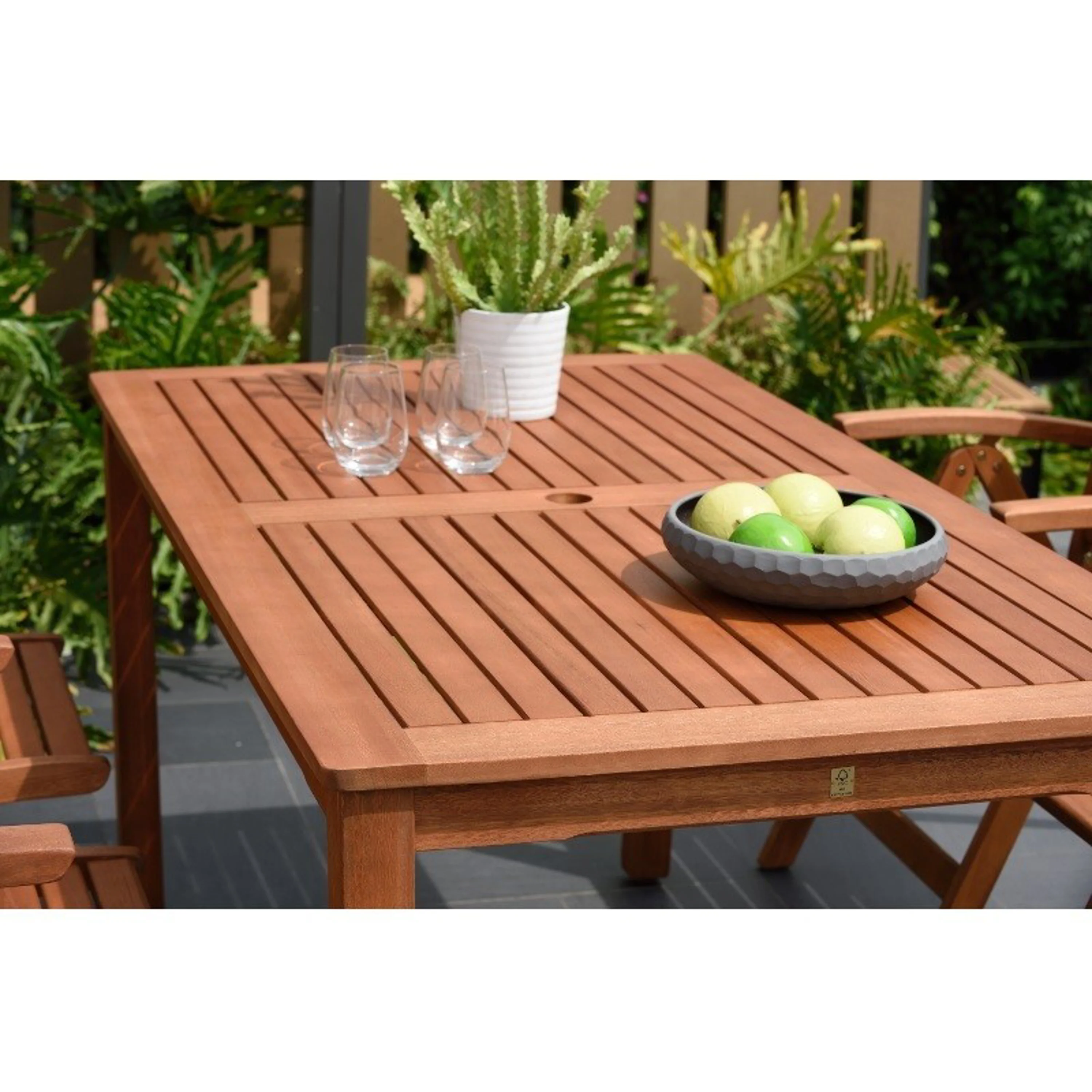 Stabilní stůl Orlando je vyroben z odolného eukalyptu. Pěknou sestavu vytváří v kombinaci s křesly Orlando, případně s křesly či lavicí Flamingo. Odolné eukalyptové dřevo zaručuje dlouhověkost a odolnost i proti kyselým dešťům ve městech.