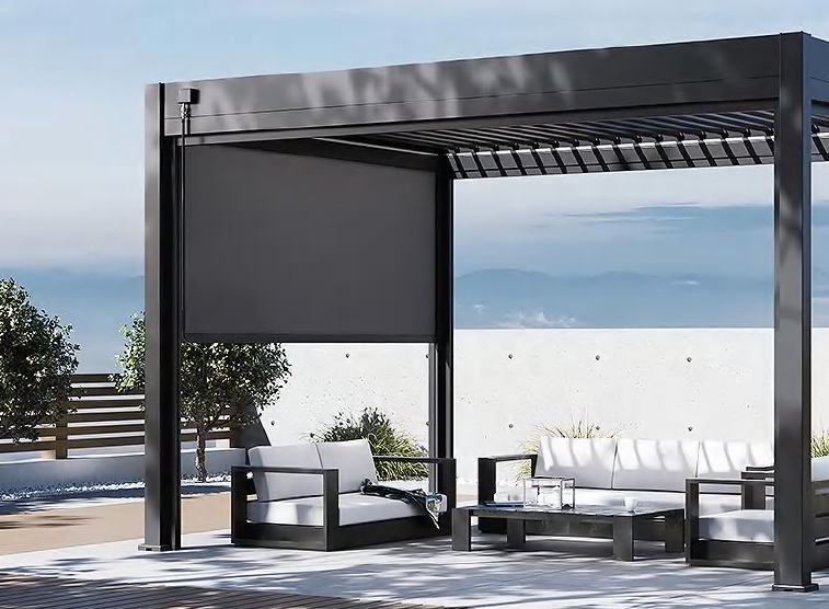 Zástěny jsou kompatibilní se všemi typy našich bioklimatických pergol. Příslušenství k pergolám je možné instalovat kdykoliv, není nutná montáž již během instalace samotné pergoly.