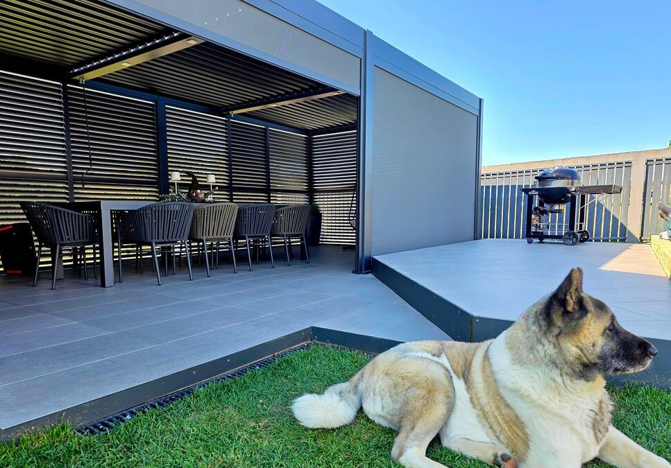 Zástěny jsou kompatibilní se všemi typy našich bioklimatických pergol. Příslušenství k pergolám je možné instalovat kdykoliv, není nutná montáž již během instalace samotné pergoly.
