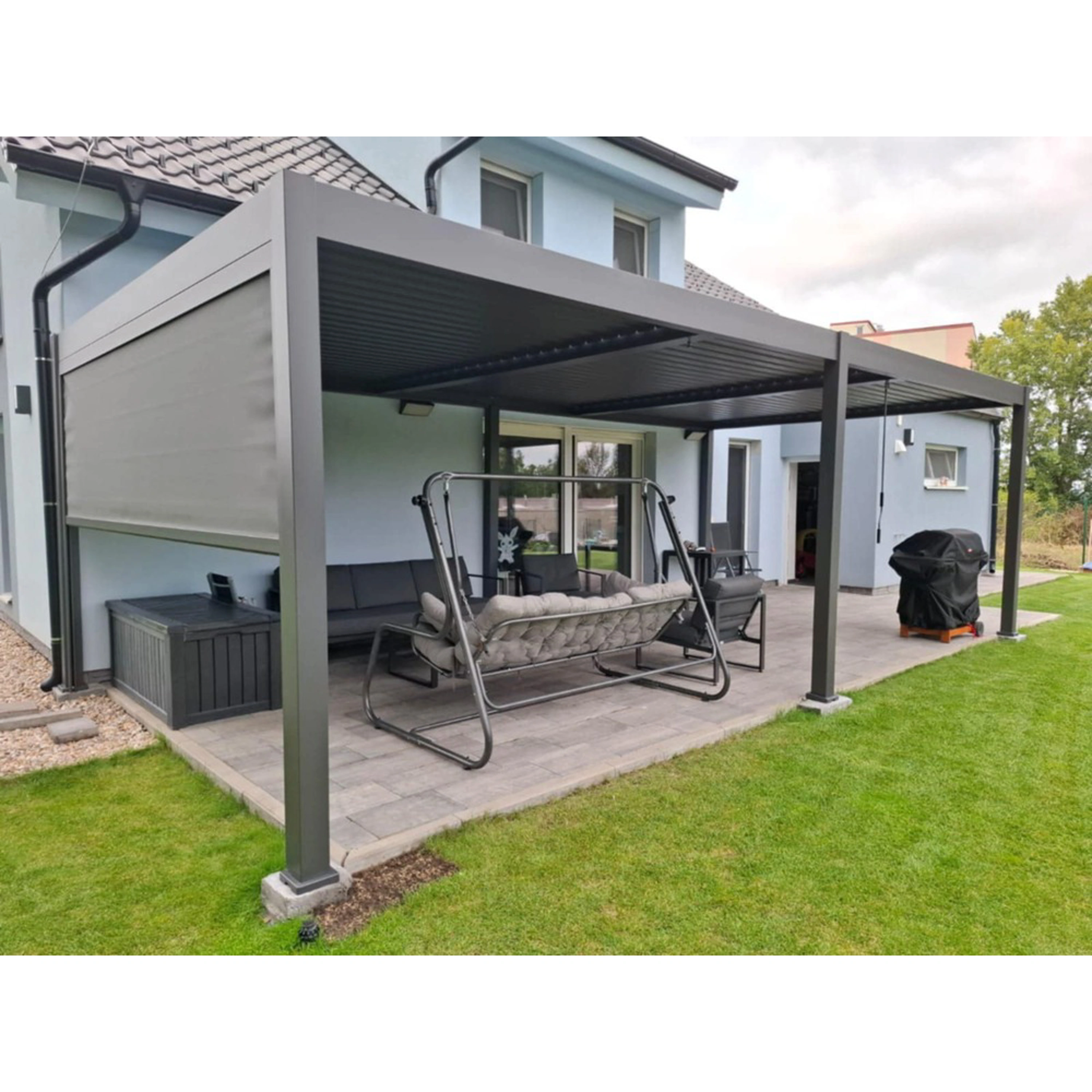 Zástěny jsou kompatibilní se všemi typy našich bioklimatických pergol. Příslušenství k pergolám je možné instalovat kdykoliv, není nutná montáž již během instalace samotné pergoly.