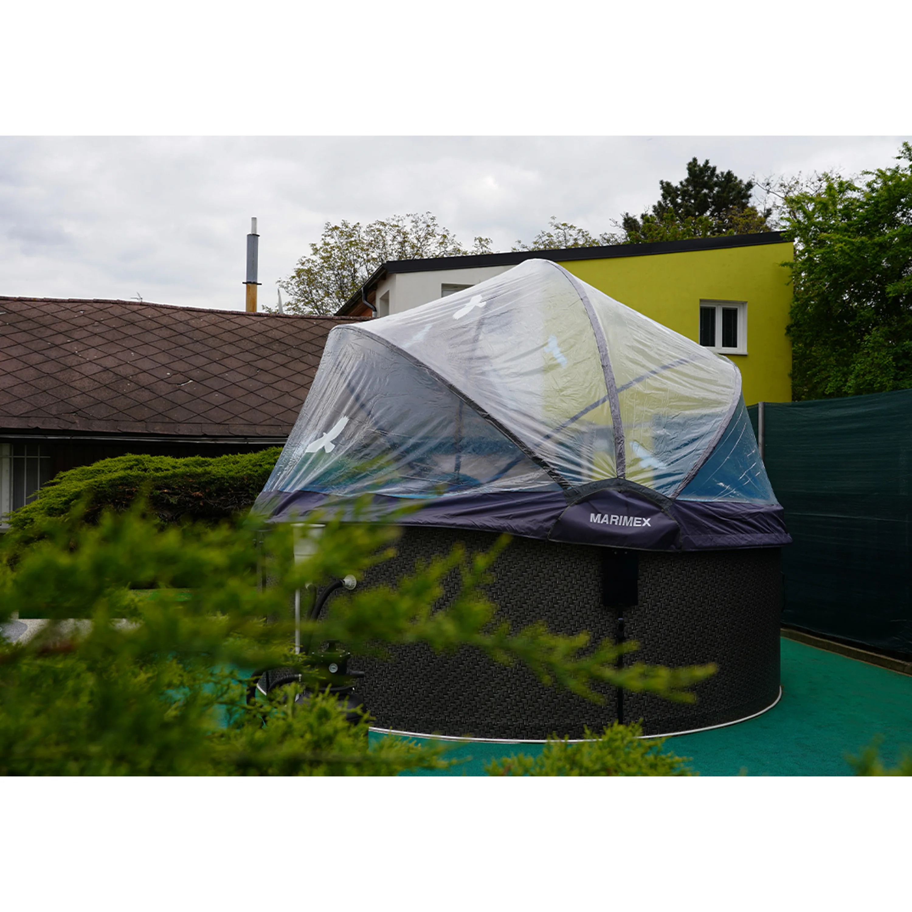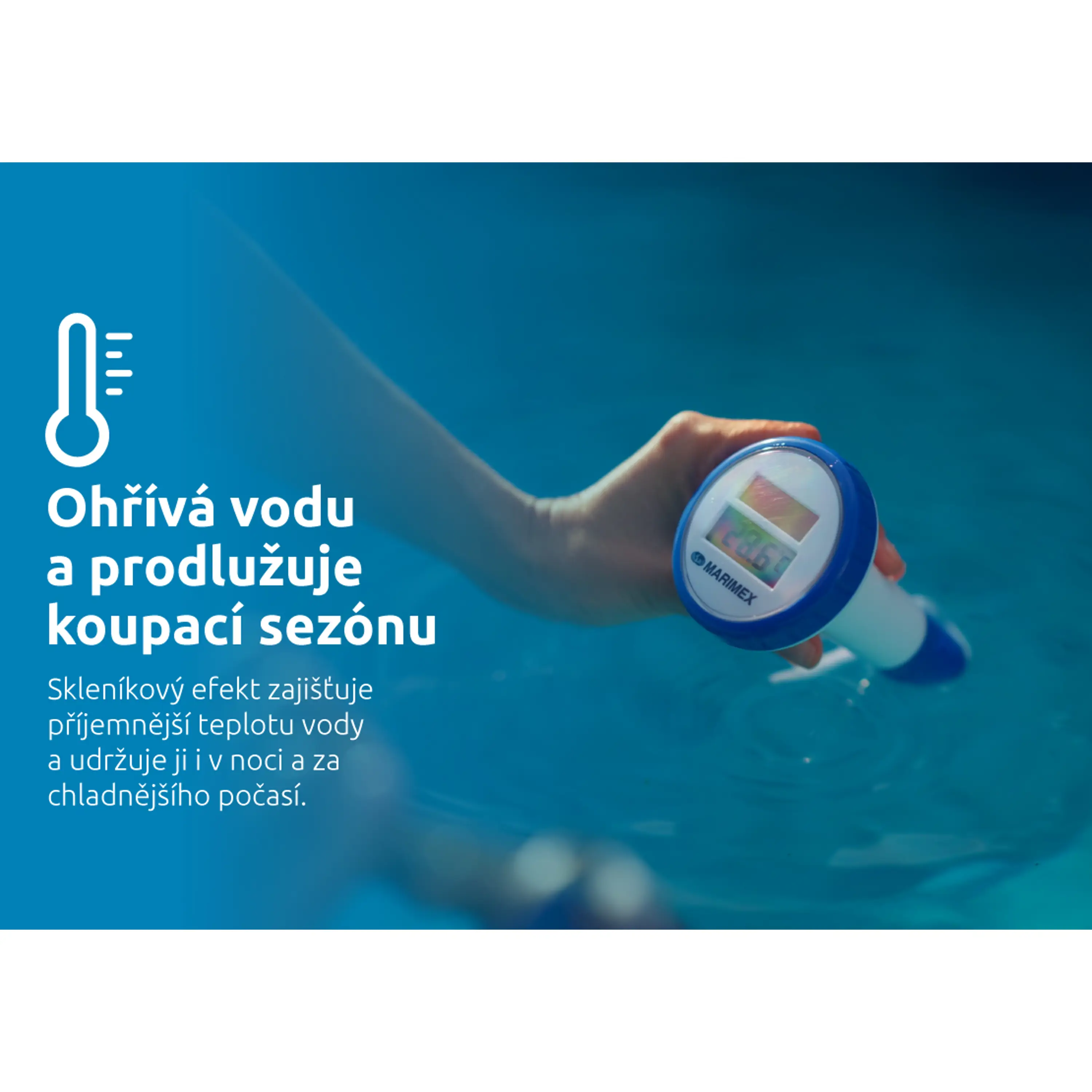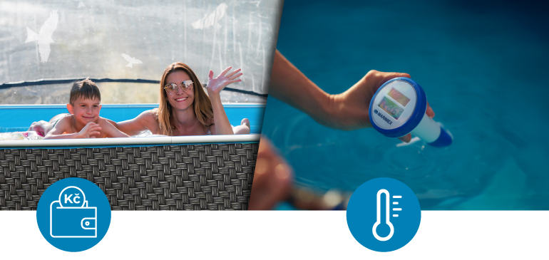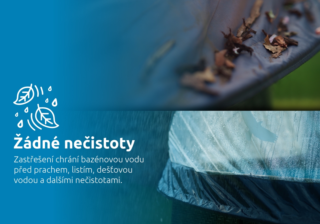 Díky skleníkovému efektu a průhlednému materiálu zastřešení se voda přirozeně ohřívá slunečními paprsky, což umožňuje koupání i při nižších venkovních teplotách. Zastřešení pomáhá udržet teplotu vody i přes noc nebo při ochlazení. Výsledkem je delší koupací sezóna bez nutnosti dodatečného ohřevu, a tedy i úspora energií. Voda bude příjemně teplá od jara až do podzimu a koupání si tak užijete naplno.