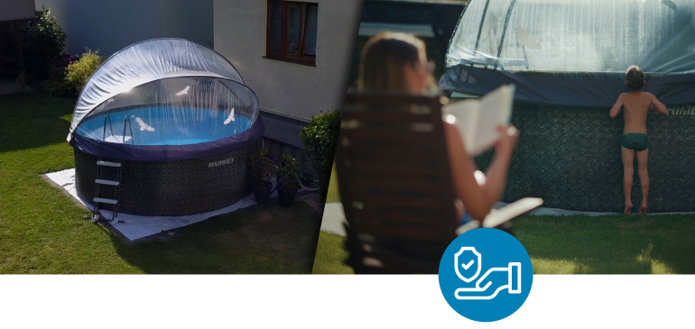 Jednoduchá manipulaceZastřešení je možné otevírat, zavírat a sklápět podle potřeby. Z nadzemního bazénu snadno vytváří krytý bazén a zabraňuje nechtěnému vniknutí dětí a zvířat do vody. |