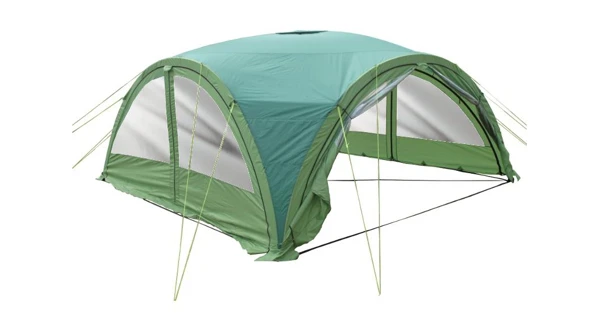 Je vybaveno 2 vstupními otvory podepřenými sklolaminátovou teleskopickou tyčí. Další bezpečnostní prvek, kromě kotvicích kolíků a lan, jsou pásy spojené s konstrukcí zastřešení, na kterých je postaven naplněný bazén. Tím je zvýšena stabilita celé konstrukce a zastřešení tak odolá i silnému větru.
